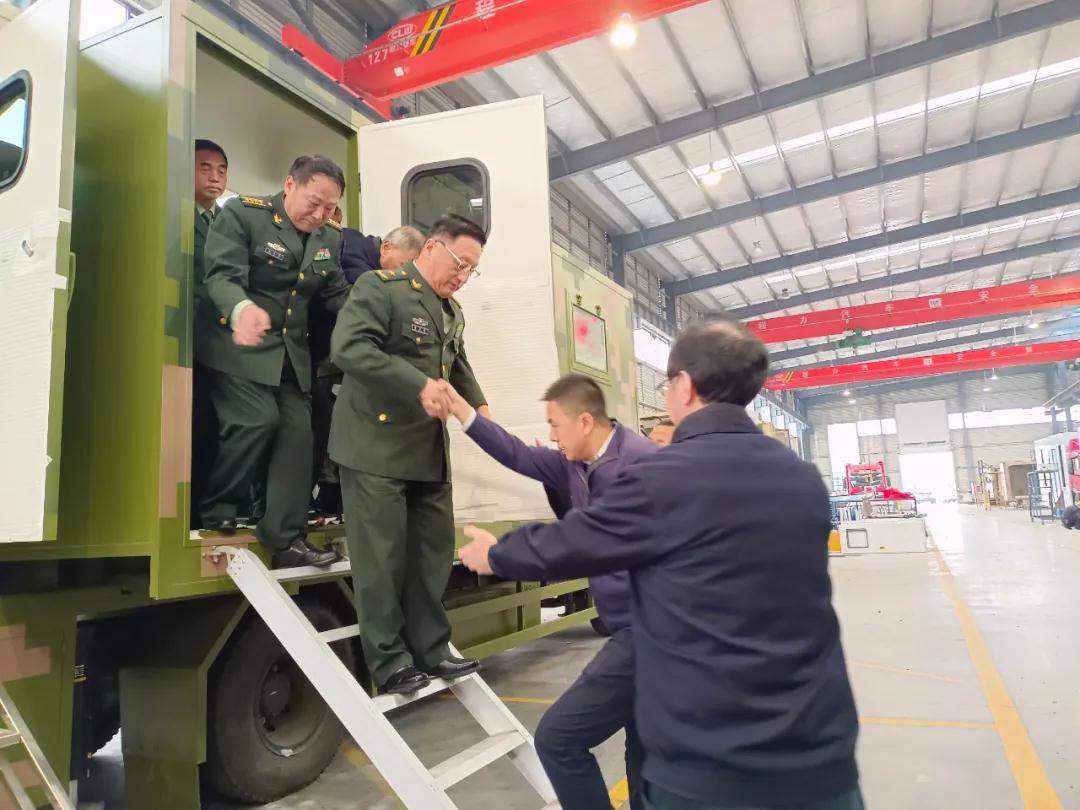 視察組參觀的第二站,來到了程力汽車集團應(yīng)急保障車生產(chǎn)車間調(diào)研,對程力野外露營車、淋浴車、餐車、被服洗滌車、電源搶險車、排澇車等軍民兩用裝備的生產(chǎn)工藝與產(chǎn)能,表示出濃厚的興趣;當(dāng)首長們了解到中國神舟十三返航英雄們,所用的地面后勤保障醫(yī)監(jiān)醫(yī)保醫(yī)療專用車,也是程力公司所生產(chǎn)的情況后,大加贊許。